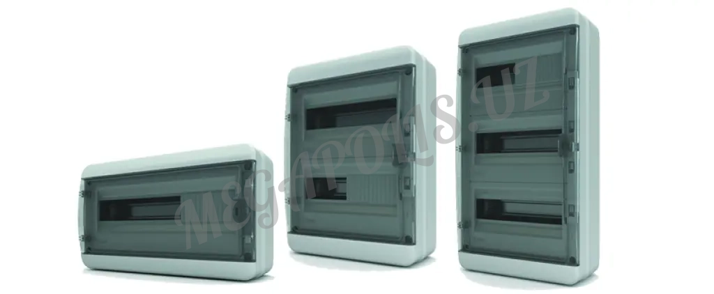 Щиты распределительные пластиковые наружного и внутреннего монтажа TEKFOR на 6,8,12,18,24,36,54 модулей IP41, IP65 цены договорные Произведены в России, цены договорные от 85000 сум.