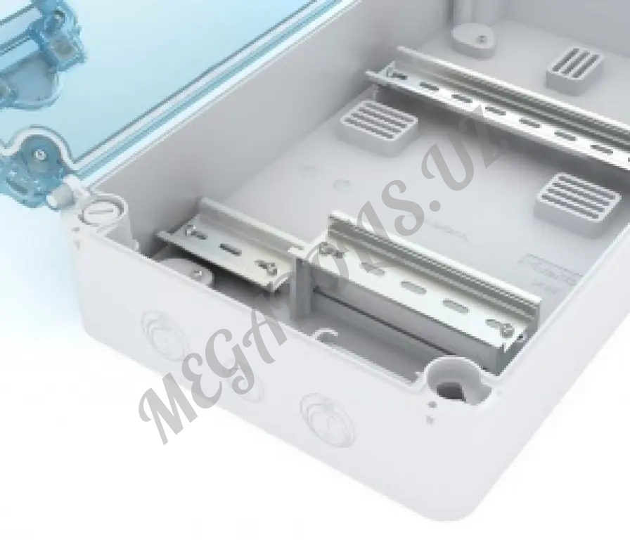 - DIN-рейка имеет восемь положений в кронштейне, обеспечивая установку устройств, с глубиной от 53 мм до 85 мм — расстояние между DIN